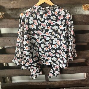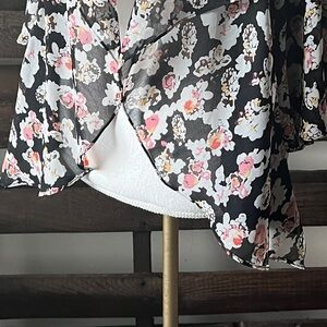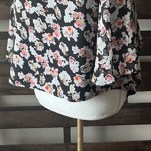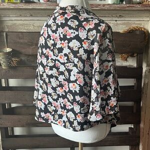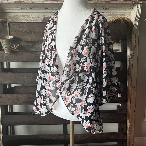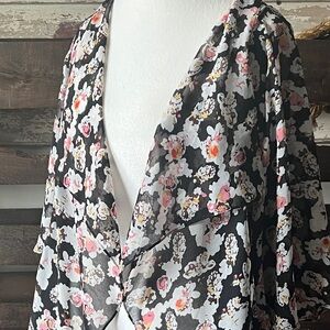 POEMA Open-Front Cardigan in Black/Floral Print LG