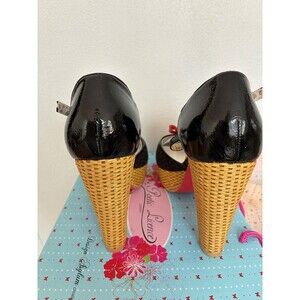 The POETIC LICENSE London Quirky black gingham straw peep toe ankle strap heels are a stylish and eye-catching choice for any party or cocktail event. These ultra-high heels feature a platform style with a peep toe and ankle strap, adding a touch of sophistication to your outfit. The black gingham pattern gives these heels a fun and trendy vibe, perfect for summer, fall, or spring occasions. Made from fabric and boasting a cone heel style, these size 8.5M heels are a unique addition to your wardrobe that will surely make a statement in any London-themed setting.