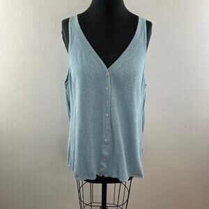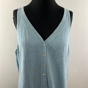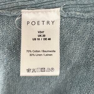 POETRY Blue Linen Cardigan Sweater Cotton Ribbed V-Neck Button Knit Size 16