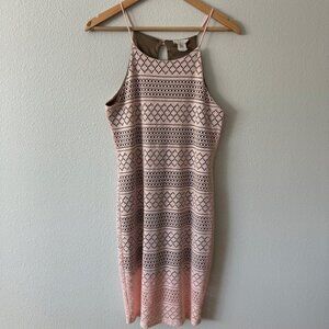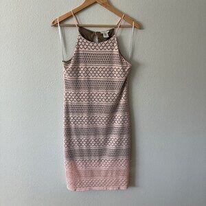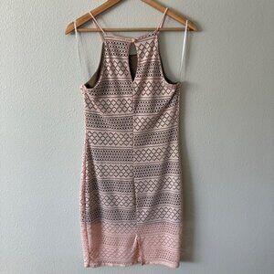 POETRY Pink Blush Lace Overlay Bodycon Slip Dress With Spaghetti Straps Size L
