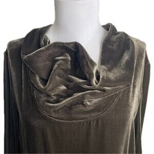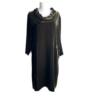 EUC POETRY Silk Velvet Cowl Tunic Dress w Pockets Brown Gray Lagenlook Size 10 US / 14 UK