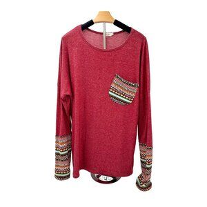 Clay Color Pull Over with Aztec Design on Pocket and Trim. Size 2XL Purchased from thrift (AS IS CONDITION) Light box used to give you the best views of items condition, NO RETURNS. Wash before Wearing.