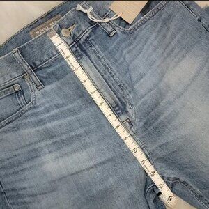 POINT SUR X J.CREW High Rise Slim Boy Raw Hem Straight Leg Light Wash Cuff Jeans