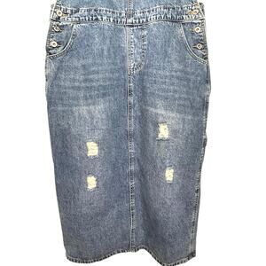 POINT ZERO Women’s Distressed Denim Carpenter Midi Skirt Coverall