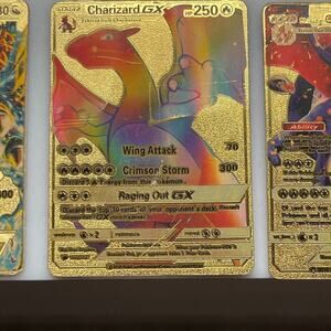 POKEMON GOLD FOIL CARD M.Charizard EX/Charizard GX Wing Attack/Thunder Punch