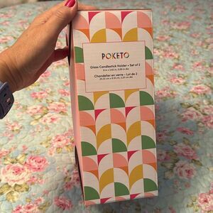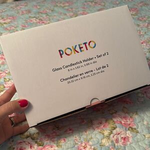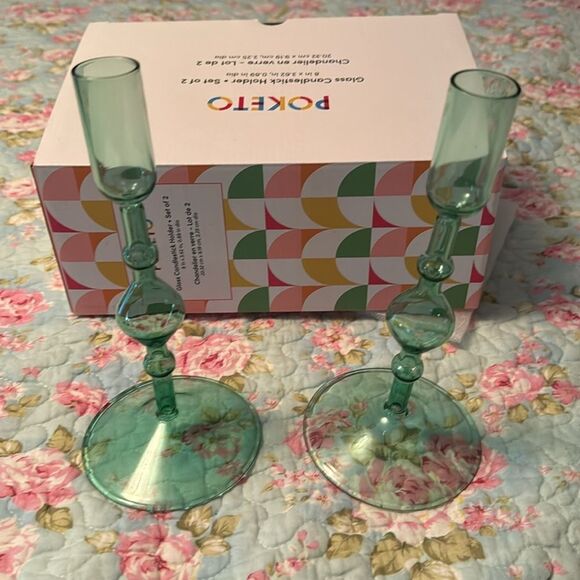 POKETO Glass Candlestick Holder Set of 2 New In Box