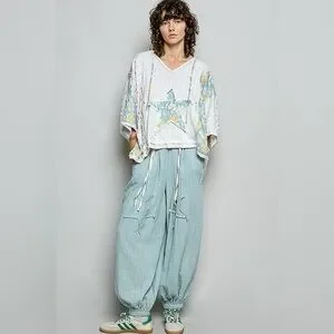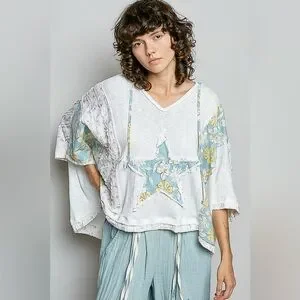 Elevate your casual wardrobe with the chic V-neck long-sleeve ribbed top. Its relaxed fit and soft, drapey silhouette ensure all-day comfort and style. The lace contrast detailing and floral star patch add a delicate yet trendy touch to the classic ribbed design. This top is perfect for effortless layering or as a standalone statement piece. Embrace a touch of sophistication with this versatile and charming ribbed top.