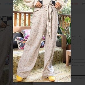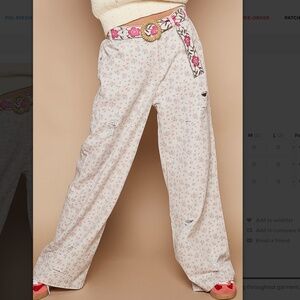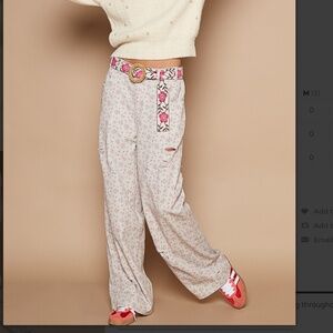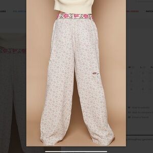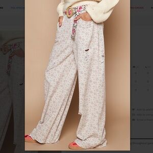 POL 🩵 73 POL Twill Distressed Loose Fit Pants In Pink Floral SR4