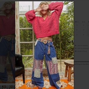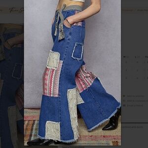POL “ Alexia “ POL Denim Pants with Printed Contrast and Stud Detail 34