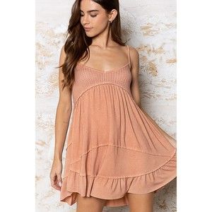 POL All The Sweet Things Sexy Peach Knit Deep V-Neck Felt Ruffle Hem Tunic Dress