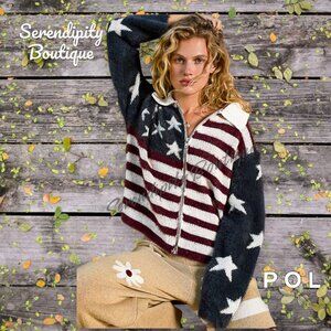 POL American Flag Slouchy Baggy Long Sleeve Cozy Zip Up Cardigan Sweater.
