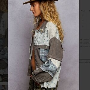 POL “Ana 2 “ POL Printed and Twill Fabric Mixed Jacket Shacket