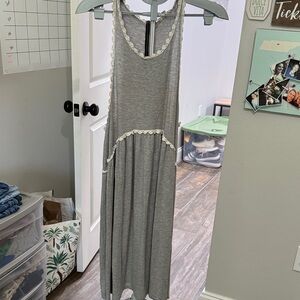 Stylish gray backless dress by POL. Features delicate white accents. Ideal for casual wear.