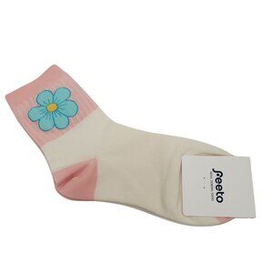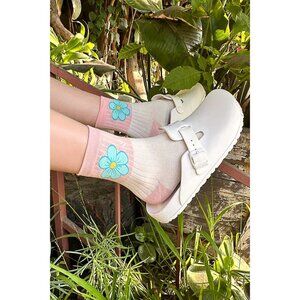 POL Baby Pink Hippie Flower Boho Kidcore Lolita Rib Flex Comfort Ankle Socks