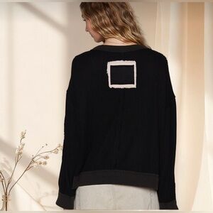 POL Black Vintage Wash Thermal Top | Relaxed Fit with Double Peace Patch