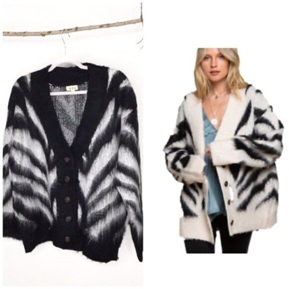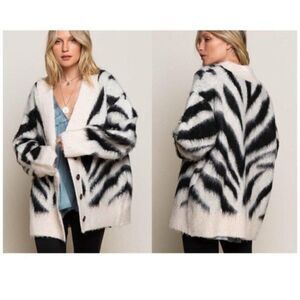 POL Black and white Zebra Knit Mohair Cardigan