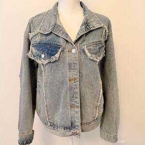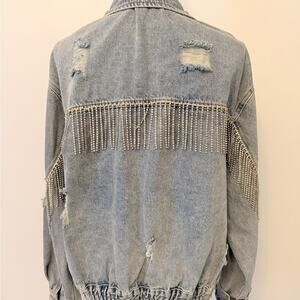 POL Blue Silver Jean Jacket with Distressed Details and bling