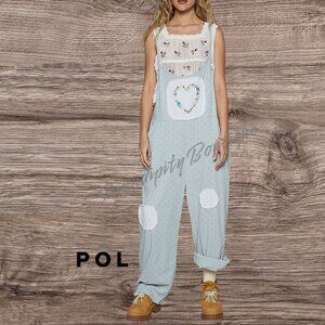 POL Bohemian Farm Girl Slouchy Powder Blue Patchwork Floral Jumper Overalls.