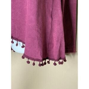 POL Boho Burgundy French Terry Long Sleeve Sweatshirt type Top with Pom Pom Trim New
