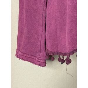 POL Boho Burgundy French Terry Long Sleeve Top with Pom Pom Trim New L