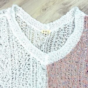 POL brand stylish boho chic two-tone open crochet oversized knit sweater. Features white and blush pink colors. Super soft and such a flattering cut and style.