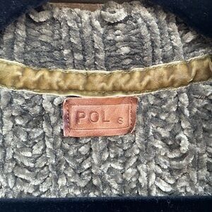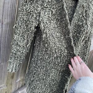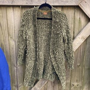 POL Boho Chunky Knit Chenille Distressed Open Front Army Green Cardigan Sweater