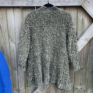 POL Chunky Knit Chenille Distressed Open Front Army Green Cardigan Sweater