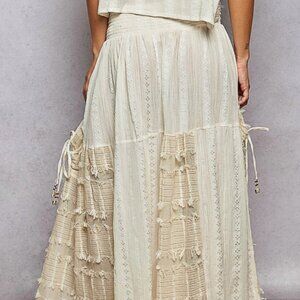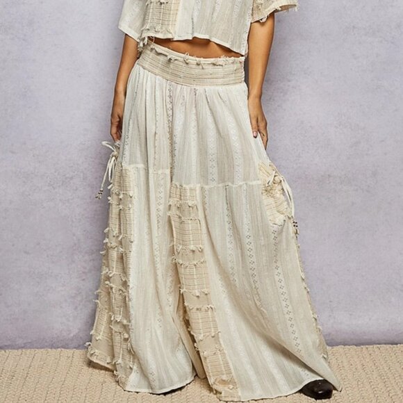 POL Boho Ruffle Contrast Shell Trim Wide Leg Pants S-L
