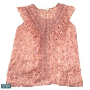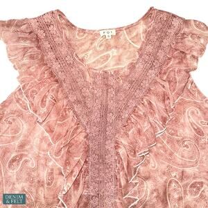 POL Boho Sheer Paisley Lace Ruffle Blouse Romantic Feminine Chic Pink Small