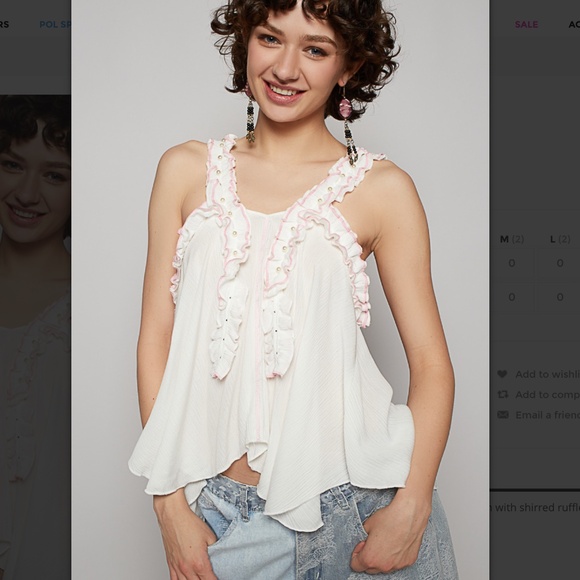 POL “ Bradenton “ POL Rayon Tank Top with Shirred Ruffle and Pearl Detail 89