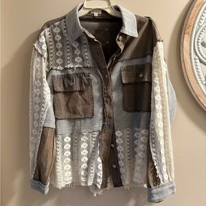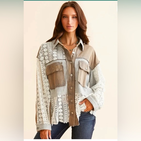 NWOT- Chic button-up shirt/shacket in a soft brown/gray tone. Perfect for casual wear.