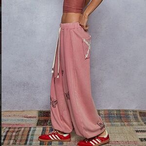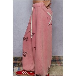 POL Butterfly Embroidered Vintage Wash Stretchy Waist Jogger Pants