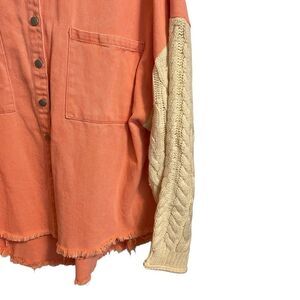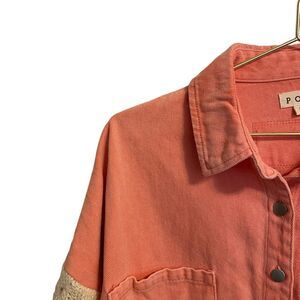 POL Button Down Knit Sleeve Shirt Pink Tan Size Large