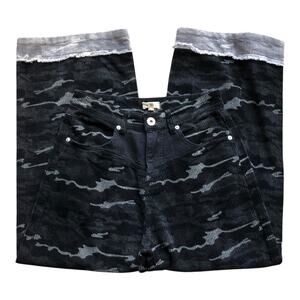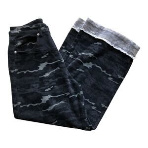 POL Camouflage Print Wide Leg Black Gray Corduroy Pants Women's Size Small