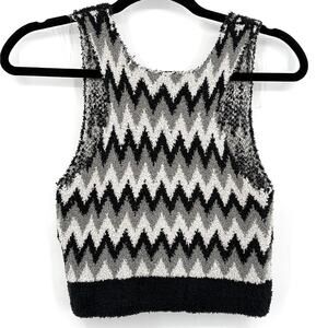 POL Chevron Pattern Tank Women's L Y2K Black Gray White Fuzzy Texture Zig Zag