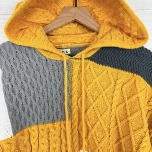 POL Chunky Cable Knit Colorblock Sweater Women S Hooded Yellow White Spring Twee