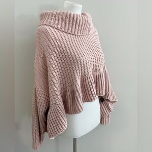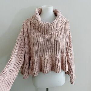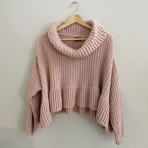 POL Chunky Knit Cozycore Pink Cowl Neck Sweater oversized small boho lagenlook