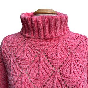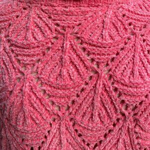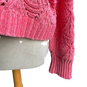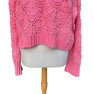 POL Chunky Knit Crochet Oversized Sweater Wm Sz M Pink Velvet Chenille Crop Barbiecore Cozy Scandi Girl