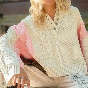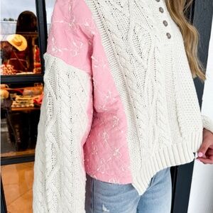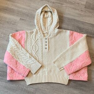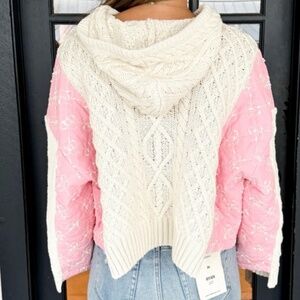 POL Chunky Oversized Sweater Hoodie Cable Knit Cream Pink Quilt Women's Small S