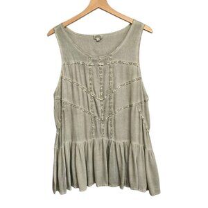 POL Clothing Womens Small Tank Top Boho Oversized Sage Green Mineral Washed