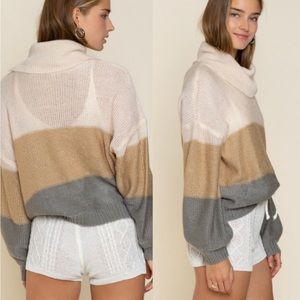 Pretty Soft Color Block Cowl Neck Sweater.