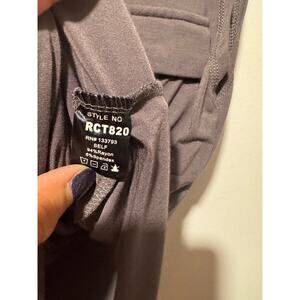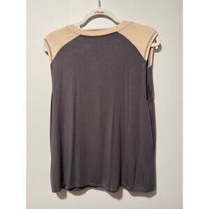 The top has a color-blocked design, with a lighter color on the shoulders and a darker color for the main body. It features two chest pockets and a drawstring neckline.