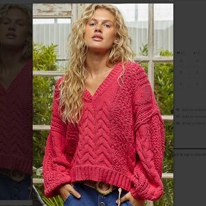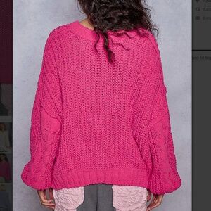 Designed overlay V-neck, balloon sleeve, semi cropped fit top in chenille sweater with twisted knitting detail pointed solid pattern.