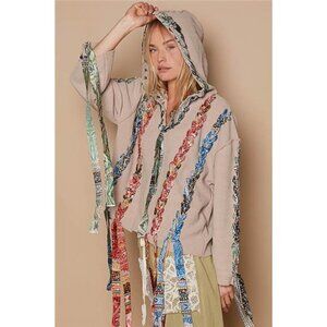POL Contrast Thread Peace Back Hooded Sweater
