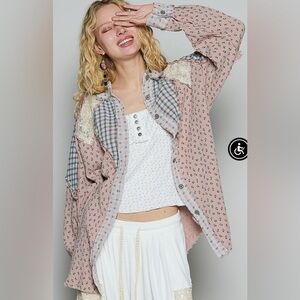 POL Cotton Gauze Multi Media Embellished Button Down Shirt