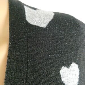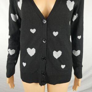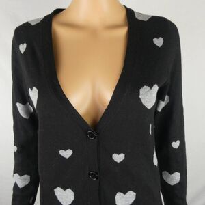 POL Cotton Black Grey Heart Polka Dot Cardigan Sweater Mod Rockabilly Small