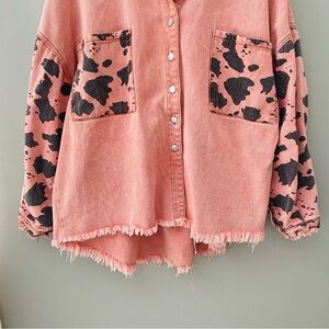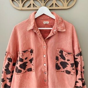 POL Cow Print Button Up Jacket Red/Black Sz Medium