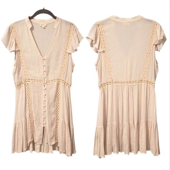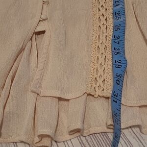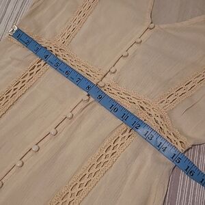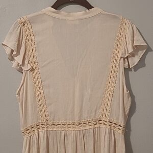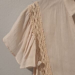 POL Cream Button-Dow Crochet Lace Flutter Sleeves Tunic Boho Blouse Top Wmns M