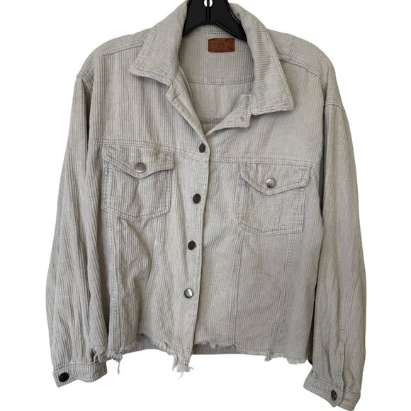 POL Cream Corduroy Cropped Button Jacket – Raw Hem, Distressed, 100% Cotton (S)