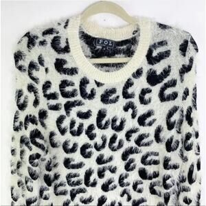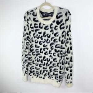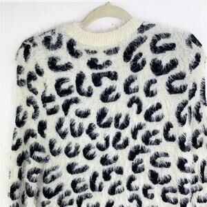 POL Cream Eyelash Leopard Print Pullover NWOT